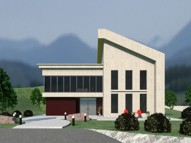 一方向に傾斜した屋根で、モダンな印象を与えます。
